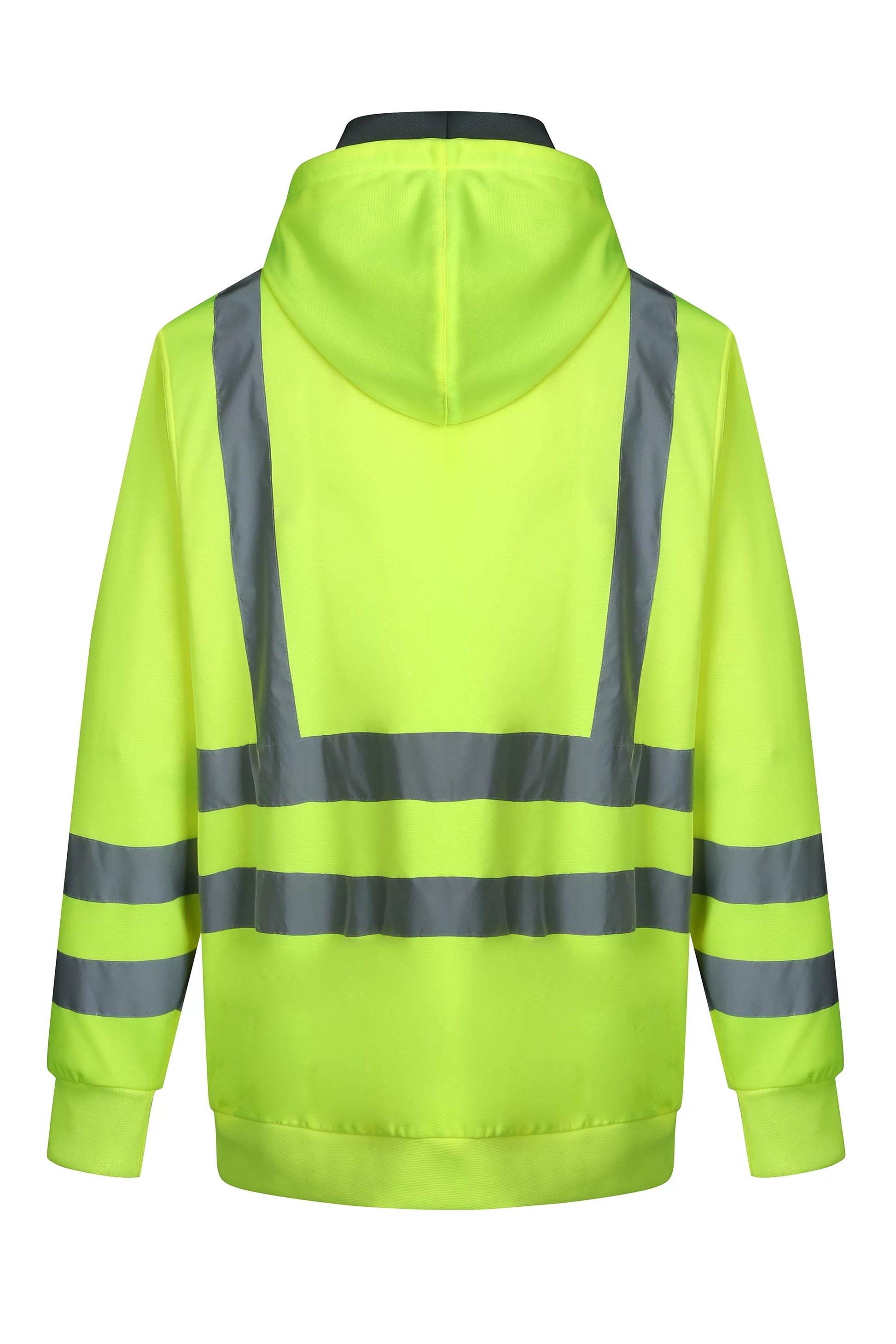 Lightweight warm fleece hoodie Pesso FL03 with full zipper, practical zipped pockets in High visible Yellow color.