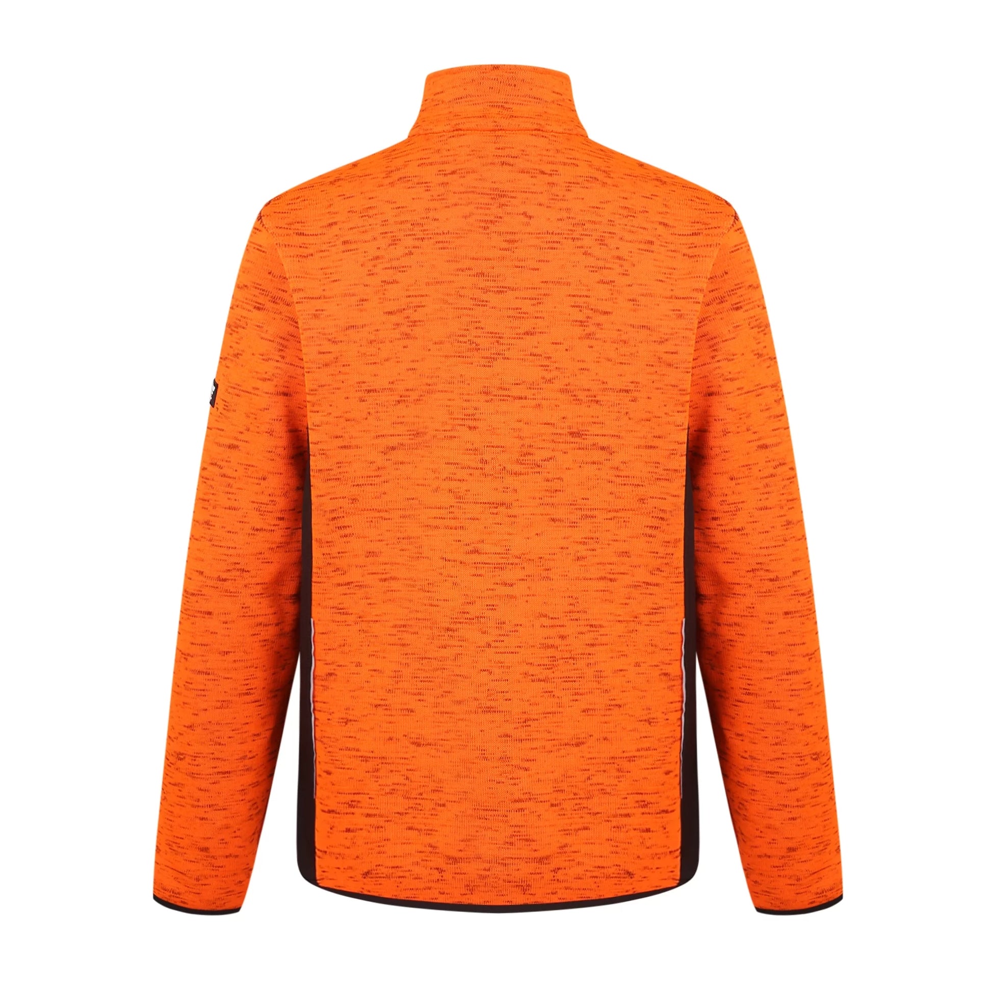 Lightweight warm fleece jacket with full zipper, practical zipped pockets in High visible orange color.