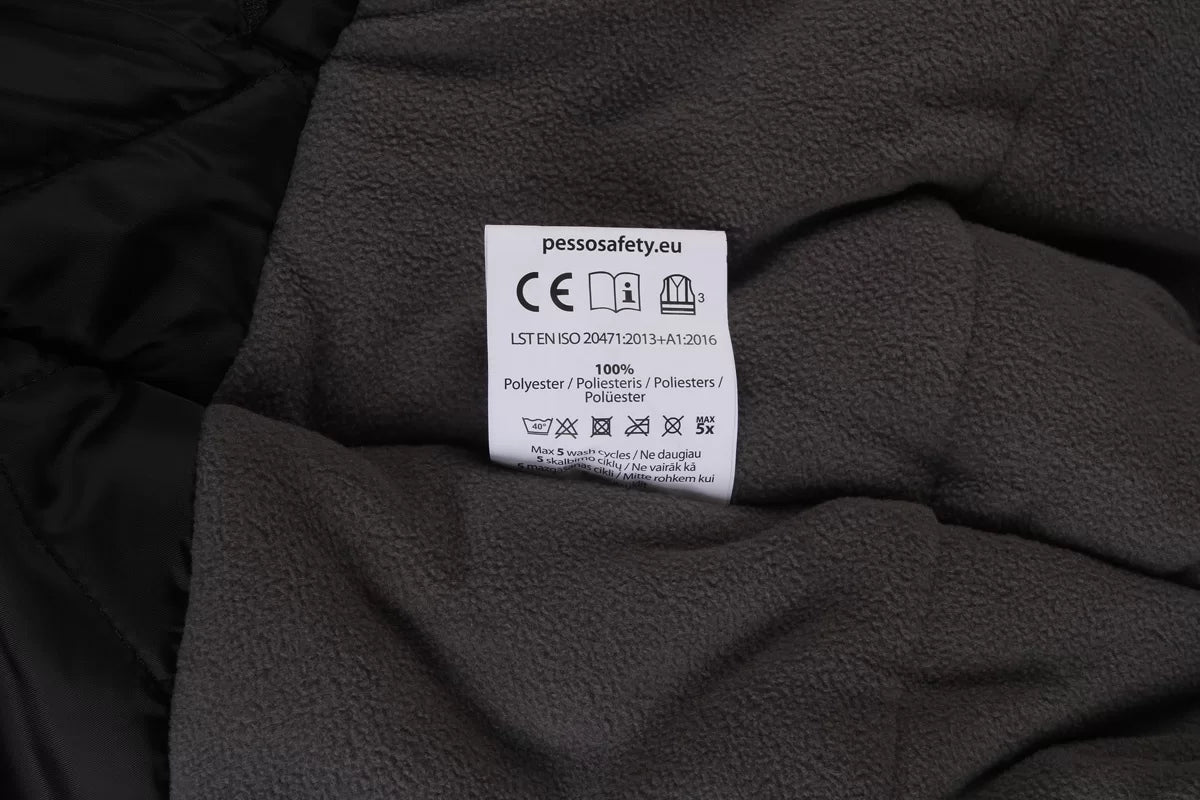 Outer material: Main fabric - PE/RIP-STOP with PU coating. Durable, waterproof, breathable. EN ISO 20471 Class 3