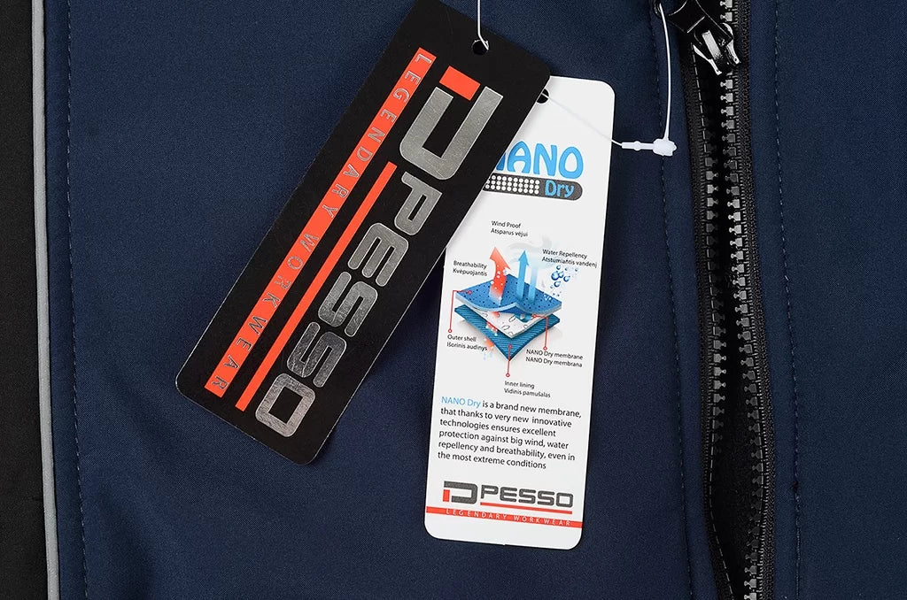 Waterproof, windproof, but breathable softshell material Softshell Pesso jacket.  Special moisture-proof TPU membrane allows the body to breathe and wetness vapour outside. 4-way stretch material for maximum comfort. Reflective details. Water-repellent zippers.