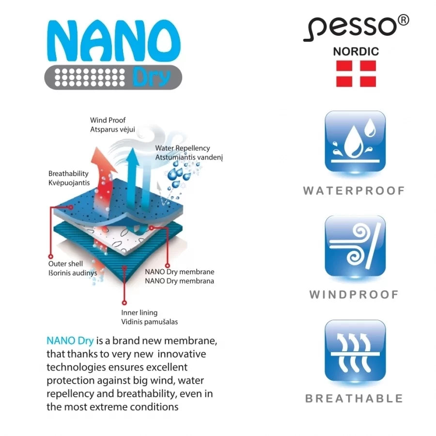 NANO dry  is a  brand new membrane, that thanks to very innovative technologies ensures excellent protection against big wind, water repellency and breathability, even in the most extreme conditions.