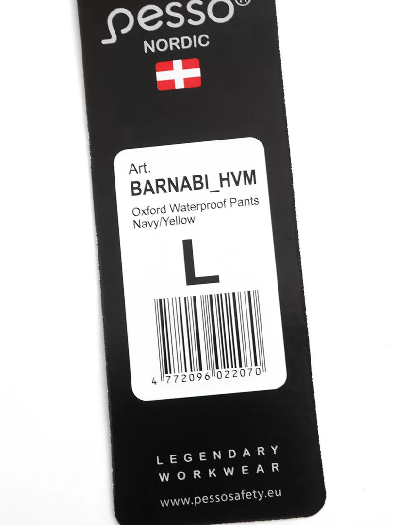 Windproof, water-proof, breathable comfortable working pants Pesso Barnabi_HVM. Feature reflective tapes and heavyweight 300D Oxford material. Light padding brings comfort in cold winter days. Main connections double-stitched for extra durability. High Visibility standard EN ISO 20471 Class 1