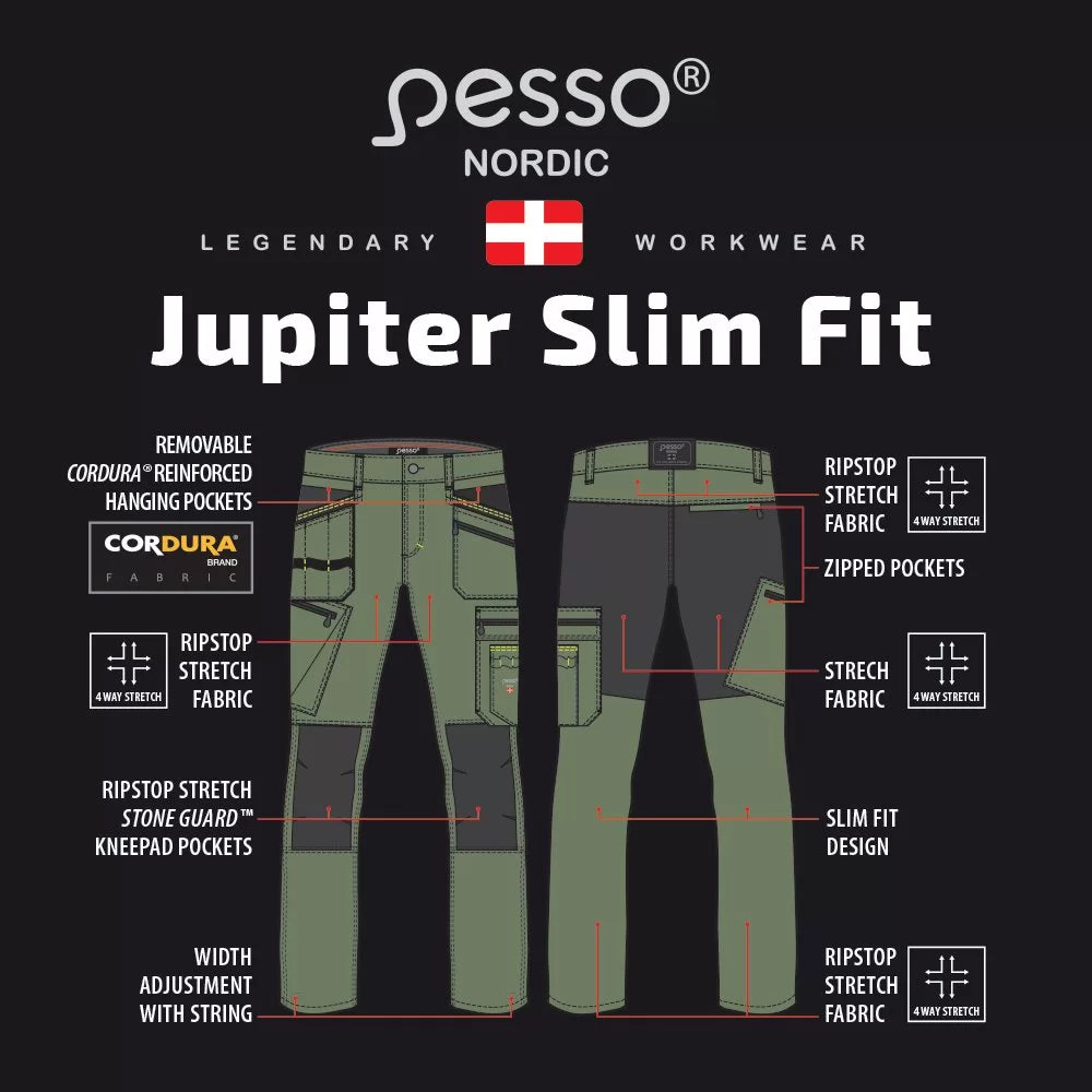 Heavyweight workwear pants Pesso Jupiter Slim Fit. Ripstop fully flexible trousers with Cordura® details for better durability. The stretchability to all directions & comfortable model does not restrict the freedom of movement.