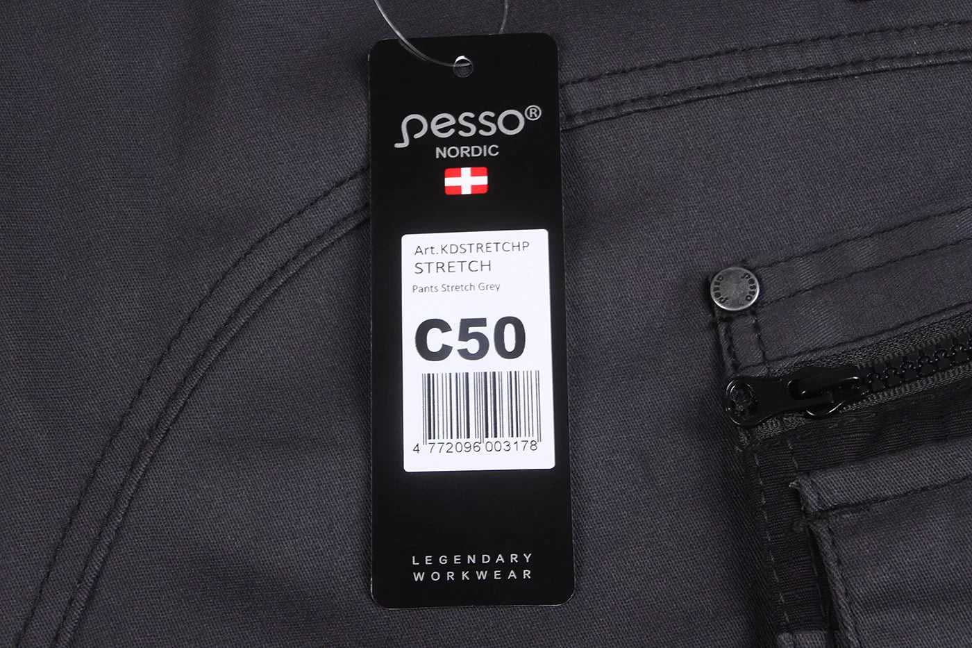 Pesso workwear trousers from strong Cotton fabric TWILL STRETCH with elastane. Reinforcements with RIP-STOP material. Comfortable & Flexible.